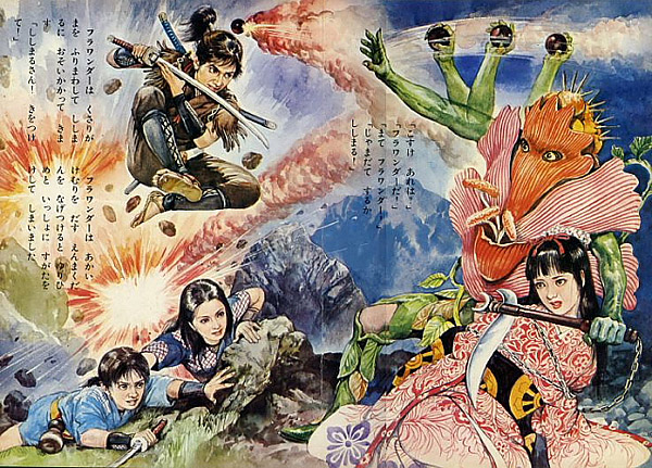 Pink Tentacle has a terrific series of images from profound illustrator Ishihara Gōjin, including these pages from a Kaiketsu Lion Maru ‘sonosheet’ book: