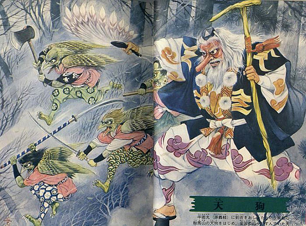 Otherwise known as ‘Gekko Hayashi,’ Gojin’s paintings and illustrations range from kids superhero and sci-fi books to horrific yokai to homoeroticism. I have a few books of his, and there sure is a damn strange quality to his art, even the most vanilla of subjects done for the mainstream. Figures are strangely stiff, but somehow bouncy and gung-ho at the same time. His girls are often mannish and his male figures are, well… often not so mannish. His macabre stuff is just astounding.