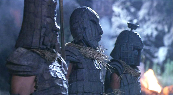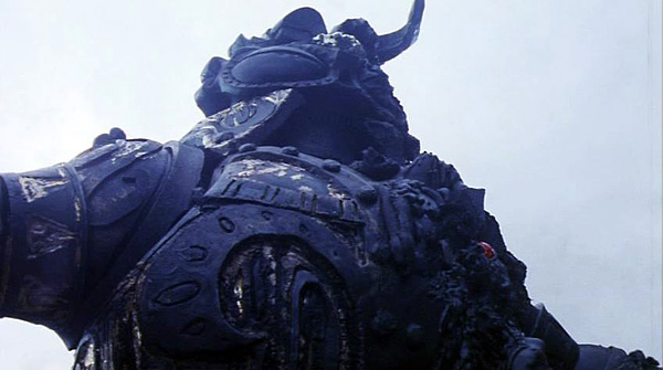 ‘Hanzo’ ends up being a pretty fun character (although his outfit looks like it’s made of lawn bags). He’s obsessed with completing his mission to steal the sword to a fanatical degree. His army has all sorts of silly skills, like burrowing through the ground ala Bugs Bunny. But they also move as a cohesive and well-disciplined unit. When the inter-dimensional vortex opens, they try to snag their master out of it by forming the biggest ninja human pyramid ever.