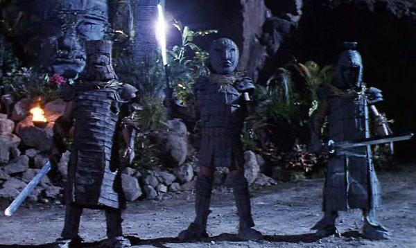 Alright, so Japan’s burliest sword goon and the cutest pistol-packin’ bounty huntress EVER have been whisked away to the magical land of gold along with a hundred ninja, their spy master, a circus troop and a lunatic cave man. Time to really mix things up with some hulking warriors right out of an archeological dig!