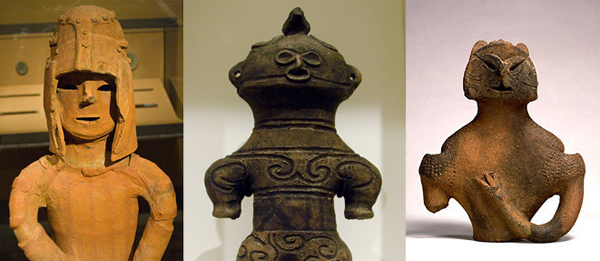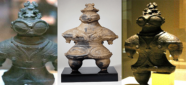 Based on Jomon Period ceramics, these costumes are just beyond cool. One of them is rather Dai Majin-like, no?