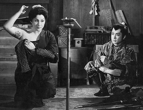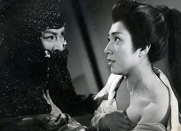 I think these still from the other Red Shadow, Akai Kageboshi, almost look better in B&W. The details of these astounding costumes are brought out better in higher contrast than they were in their decaying sepia-toned originals, which made up THE very first post ever on VN, back in June of 2009.