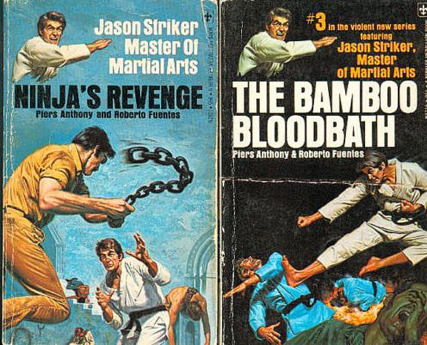 Piers Anthony and Roberto Fuentes were responsible for six chop-socky pulp novels starring Jason Striker: Master of the Martial Arts. These were in the ‘old-school vet brings back exotic skills from the war and uses them to wipe out all them hippies, punks and pinkos’ model. Two in the series were ninja-themed.