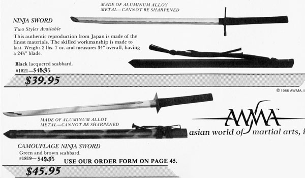 If you want to train with a short, straight blade with a square guard, knock yourself out. Sure, it’s a standard of the mail order business, but it had to have come from somewhere to begin with, right? On the other hand, if you want to make a ninja movie where those blades aren’t used in favor of some other screen aesthetic, go nuts too!