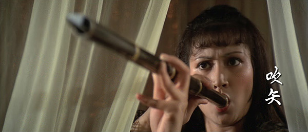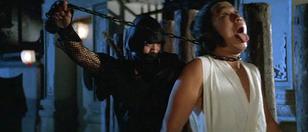 This snake in the grass sheds her angelic disguise in favor of more traditional kunoichi-cutie coture. Although a conflicted soul, Senshi's purpose in the film is to embody an even more despicable level of Japanese underhandedness and amorality. And if you know your Shaw Bros., you know the survivability rate of evil women.