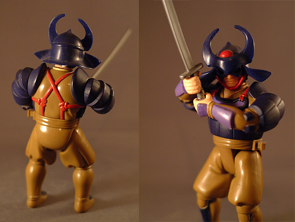 I think this was only the second armored samurai figure made in the West, after the “Kung-Fu Warrior” costume for the 70’s Fighting Furies toyline. Too bad they never did the black-magic powered ninja nemesis…