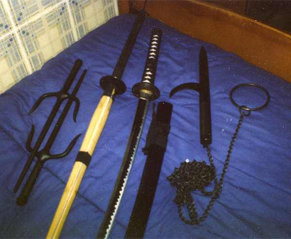 If every weekend held some sort of martial mayhem, every Christmas and birthday meant martial LOOT! I think this was my haul for Christmas of 82 or 83 maybe, all from an Asian World of Martial Arts catalog no doubt. We refurbished a bunch of this stuff twenty years later for a photo shoot, and some of it hangs on my office walls today.