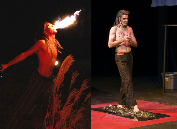 Anyway, now, I’m bald and Tim’s got a pretty awesome technicolor dreadlocked mane, so who got the last laugh! Check him out, eating fire and walking on glass in the burgeoning performing arts scene of Greenville, SC.