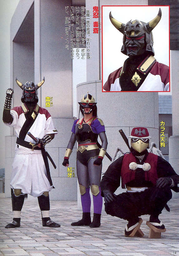 The 'karasutengu' crow ninja are a great idea, but the goofy eyes KILL the whole design. They look like spokes characters from some fast food chain. Recurring baddie Hoshinin Retsuga looks like he bought his ninja gear at Chess King!
