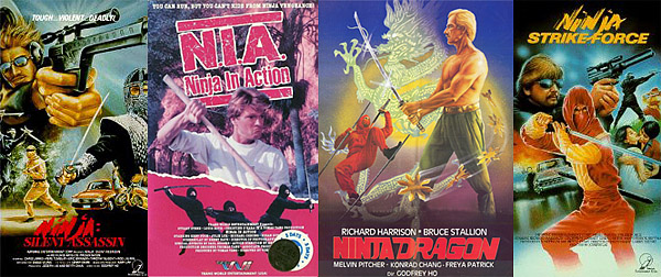 These movies infested rental stores in legion, like vermin, and were the nails in the coffin of the craze, plummeting the quality of ninja movies to new lows. How many of us rented these based on alluring clamshell packaging, only to be heartbroken once home and having to suffer through another shameless cut-together “movie” with Richard Harrison tooling it up in a yellow satin ninja headband… Deeeeeeep hurting.