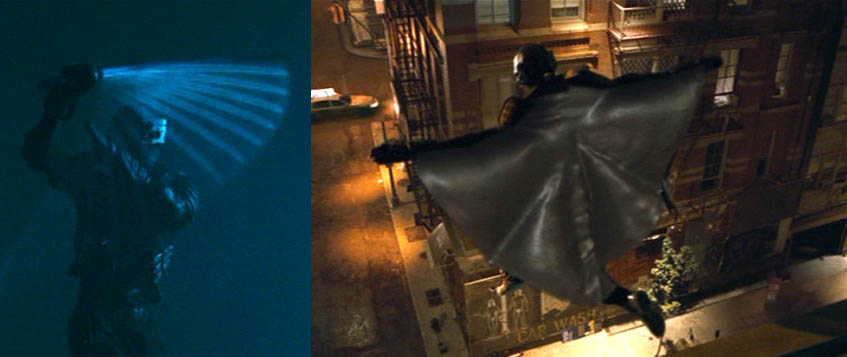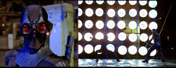 2002: BLADE II – daywalking vampires use futuristic neo-ninja-like gear to shield themselves from light. Great fight scene that suddenly becomes laughable at the end when stunt performers are replaced by rubbery but stiff-moving CG figures. See it here. This scene really set a precedent. We’re still seeing filmmakers pulling this shit now, and its as unconvincing today as it was in ’02.