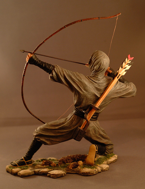 The grey archer is the second best of the line, perhaps the most striking and dramatic of them. I love the grey color (harkening back to 60's TV) and movement in the cloth. The bow is slightly asymmetrical, as it should be.