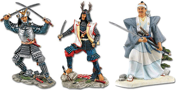 There are also two or three samurai lines from the same company of varying execution and cheesiness. None approach the coolness of the Hanzo and archer statues above.