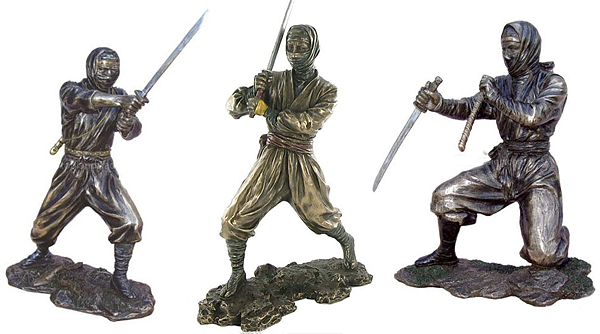 Let’s start a few weeks of gift-giving (or retail self-therapy) ideas for any and every ninja fan. I’ll kick things off with these 7-8″  Summit Collection resin ninja statues, a real throwback to the days of un-licensed figurines in the 80’s. You see these in Chinatown gift shops, swap meets and dirt malls, and all over eBay (search “ninja statue” under Collectibles – Cultures and Ethnicities) for anywhere from $25-40.