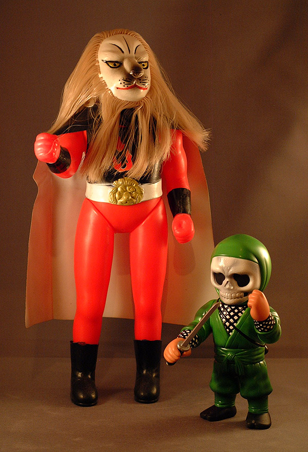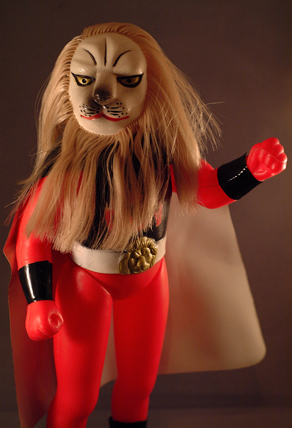 About fifteen years ago now, I purchased a small collection of Bullmark Tiger Mask vinyl figures (like these) at a toy show in Ohio. Erroneously in that batch was this 13″ Kaiketsu Lion Maru figure, vintage early 70’s. It has no manufacturer’s markings or date, and I’ve been told it is likely a Chinese knock-off or unlicensed piece, which makes it even cooler.