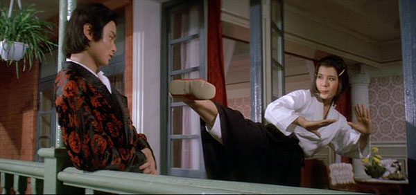 The flick in a nutshell for the uninitiated: Gordon Liu plays a martial artist betrothed to a Japanese woman (Yuka Mizuno). Once married, he discovers she’s quite the martial artist herself. Frustrated by her new life in a foreign land, she continually trashes their house while training. It’s like a pan-Asian martial arts take on Taming of the Shrew, as they trade blows and sword parries in a series of ‘debates’ about which nation’s arts are more efective.