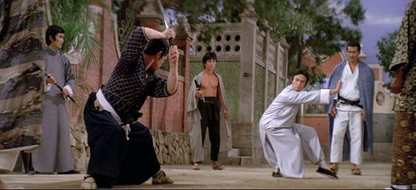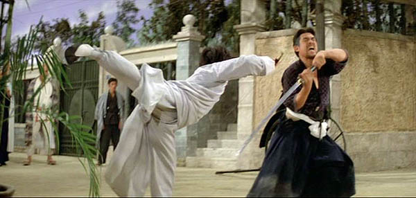 Combining Chinese and Japanese martial arts on screen is challenging to say the least. Japan’s arts are stiff and linear, China’s more circular and flowing. From a cinematic perspective, Japanese movie fights are all about long pose downs and short explosions of action with devastating results. Chinese and Hong Kong fights are long chains of dodges and parries mortared with plenty of flourish and wasted motion, drawn out like the guys are getting paid by the punch.
