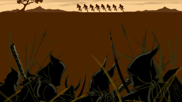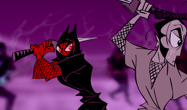 Many thanks to Eddie Mort for giving us some monster-ific shots from his in-development animated series Dead Ringo. This stuff is drawn from inspiration like The Samurai, Dororo and a huge stack of old ninja movies borrowed from yours truly, and you can really see the work’s fealty to the best the ninja genre has offered in the past. That being said, it also looks like nothing else on TV right now anywhere…
