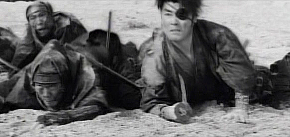 Dozens of Yagyu are sacrificed as kamikaze-like human bombs before the walls are penetrated, and equally brutal close quarters combat begins.The battlefield is left littered with dead ninja from both sides.And in the end, the deserted 'gasa' of the fallen are their only graves.
