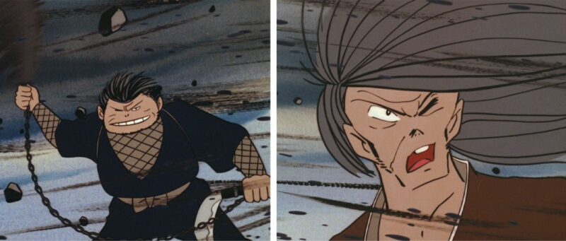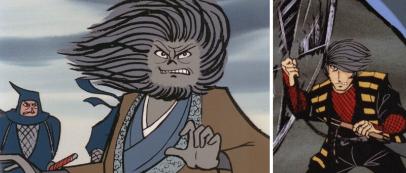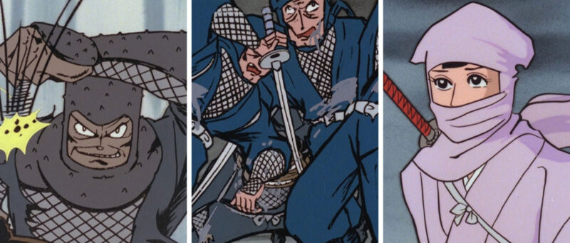 The astoundingly wide-ranging character design is lifted right off the pages of the manga — both in print and on screen Sanpei had to variate common ninja costumes enough to be interesting from week to week. The action is explosive and ferocious — especially considering the limited animation possible on budgets of the day — with plenty of exotic ninja weapons and crazy combat techniques on display. The music often sounds lifted from a Spaghetti Western and you’ll have the main theme stuck in your head for days.