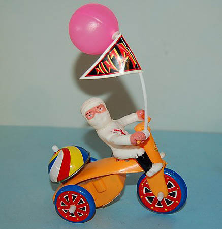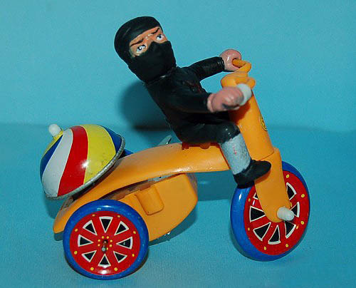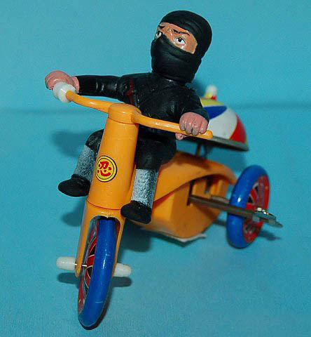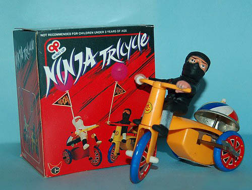 15 Apr 2010Shinobi trike by Keith Rainville | posted in: 3 - Toys and Merch | 0 This one is probably late 80’s, but you still see generic wind-up and battery-op toys like this, crudely shinobi-fied, at Southern California swap meets, Florida flea markets, dirt mall dealers and curbside vendors in NYC all the time.