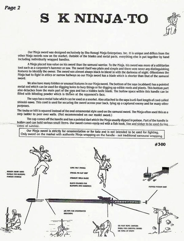 At the apex of the 80’s ninja boom, I was in my early teens, had disposable income from odd jobs and a dad willing to put his name as an adult on a mail-in order to a martial arts supply company. Despite these blessings, and being a big mark for any and all ninja merch, I never owned the stereotypical ‘Ninja-To.’
