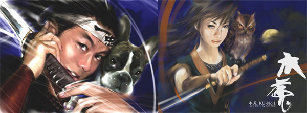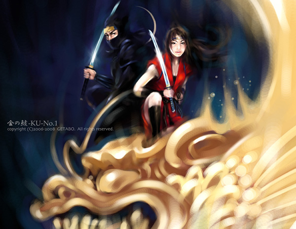 These digitally-painted sword girls are from Japanese artist GETABO Hagiwara. He’s a sword instructor as well, and it shows in the authenticity of the blades and posing in his work. He might be a Ray Harryhausen fan, too, judging from all the Jason and the Argonauts-like skeletons some of the girls are fending off.