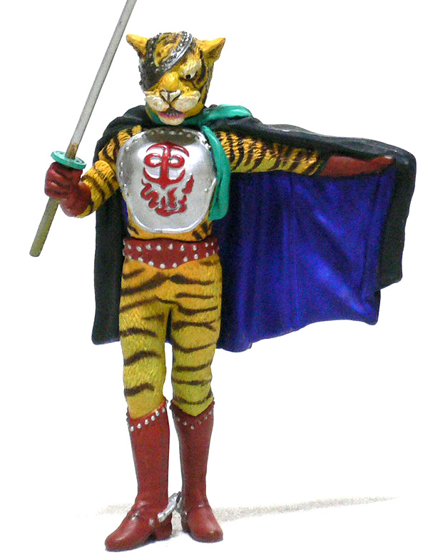 I’m of two minds about the classic Kaiketsu Lion Maru tokusatsu series. I basically love everything about it… except for the heroes. The character designs of the lead and his rival Tiger Joe sort of creep me out. Tiger I find creepier than Lion, because whereas Lion Maru is at least fully clothed, Tiger Joe is walking around PANTLESS! Seriously, look at the above image in anthropomorphic terms – if he’s human, he’s wearing a cape, a chestplate, cowboy boots with spurs, and a smile. Ew…