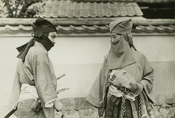 I have three antique sepia-toned photos from Japan featuring ninja and hooded heroes that neither I nor the sellers I liberated them from can identify. Anyone who helps me out will get a giant toad’s worth of gratitude from both me and the shinobifile community at large.